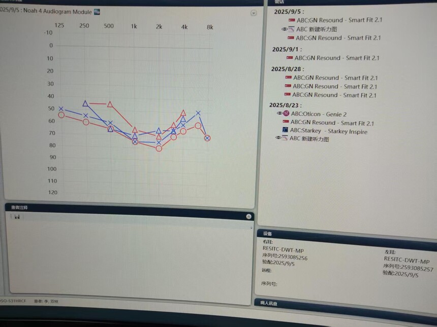 本次换机选择丹麦瑞声达聆客Q5系列耳道式无线版助听器。